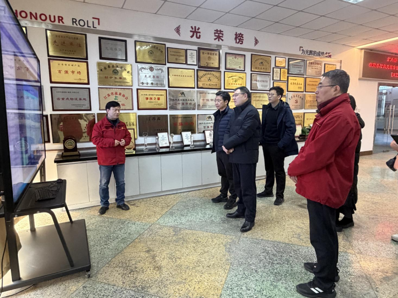 1月22日,江苏省商务厅运行处四级调研员项胜成带队一行4人,在无锡市商务局副局长钟渊陪同下,莅临朝阳农产品大市场开展促消费专项调研,无锡9家企业代表参加调研及座谈。朝阳股份总经理朱健祥热情接待了来访领导。