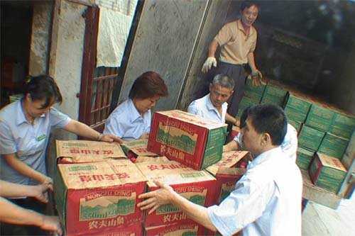 在附近的各个体摊位前,我们也看到成堆的纯净水无人问津,原来是价格抬高了很多。另据网友反映,部分外资大卖场也抬高了纯净水价格。 |