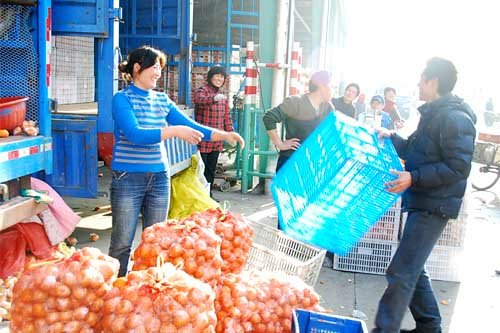 连日的阴雨天气终于告一段落,无锡朝阳农产品大市场水果交易在经历了一段时期的低靡后,随着阳光的普照,又呈现出热闹的景象。