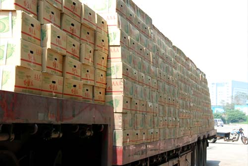 一辆辆满载包装整齐的哈密瓜箱的大吨位货车正等待卸载,货主说,这几天,来自新疆哈密、吐鲁番、鄯善、伽师、托克逊等地的哈密瓜隔天就运来一次,市场销售日渐火爆。今年的哈密瓜尤其甜,对于无锡市民来说,几乎可以品尝到与产地毫无别样的甜香。这一方面得益于新疆各产区加大商品品质控制,另一方面也得益于新疆与内地供应运销链的良好合作完善。