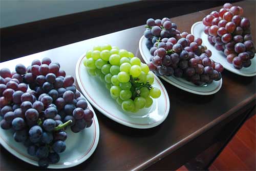 这次展销会汇集了来自无锡大浮果农协会、大浮葡萄协会、蠡园园艺科技站、华庄街道农业科、滨湖漆塘果业合作社、江阴黄土塘迎香葡萄专业合作社、江阴志泉果业公司、宜兴草莓协会、宜兴韩丰生态种养专业合作社等多家专业生产无公害葡萄的协会、基地,这些专业种植基地生产的优质葡萄,在多项国家级、省、地级葡萄评比赛事中屡获殊荣,各系列金奖、银奖数不胜数。至于其展销品种,更是如数家珍,有粒大饱满的腾瞠、涌优,美人指、金手指果型奇特、巨玫瑰馨香馥郁、夏黑油黑发亮、醉金香清绿爽口……..