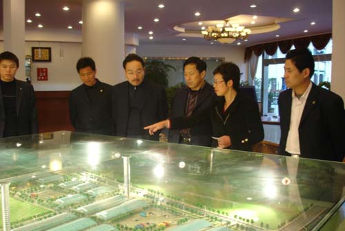 无锡朝阳股份公司副总经理樊丽萍、汪海良向山东客人介绍了朝阳农产品大市场的经营、管理和发展情况。