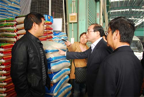 为进一步贯彻落实《江苏省政府贯彻国务院关于稳定消费价格总水平保障群众基本生活的通知》精神,无锡市政府组织市商务局、物价局、交通局、农委、卫生局、粮食局、药监局、工商局对无锡市农产品流通价格进行视察。