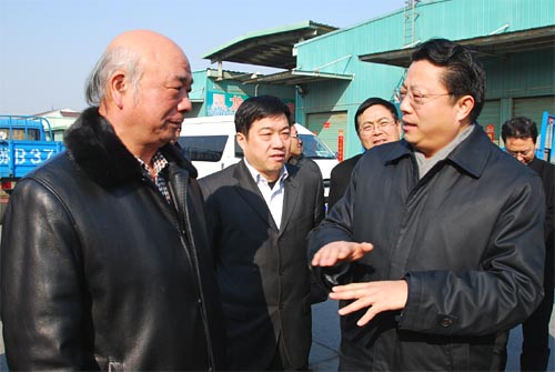 隆冬的江南大地,低温寒风依旧,但明媚的阳光预示着春天脚步的临近。节前的朝阳农产品大市场,也早已是车水马龙、热闹非凡。朝阳集团董事长张海良向杨书记一行介绍了市场为确保节日蔬菜、粮油等与居民生活密切相关的商品供应所做的不懈努力,展示了蔬菜农药残留检测中心、信息中心、交易结算中心的运作模式。杨书记还饶有兴趣地与市场内的经销商户交谈,了解商品来源和销售情况。