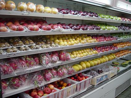 展销水果品种繁多:有黄土塘麒麟瓜,种植于苏南著名西瓜之乡—东湖塘镇黄土塘村,其西瓜皮薄、瓤酥、甜性足;有种植于苏北的东台特小凤西瓜,渣少,皮薄,入口即化;有种植于江阴祝塘镇无公害区的游圣西瓜,清甜密甘,爽口解暑;有上海郊外金山区的珠峰玉瓜,果皮淡白色,果面光滑,果肉淡绿,肉厚细嫩,是甜瓜中的上品;有上海南汇区的东方密甜瓜,瓜肉松脆带有芳香,甜而不腻,引得许多顾客纷纷前来试尝、选购。
