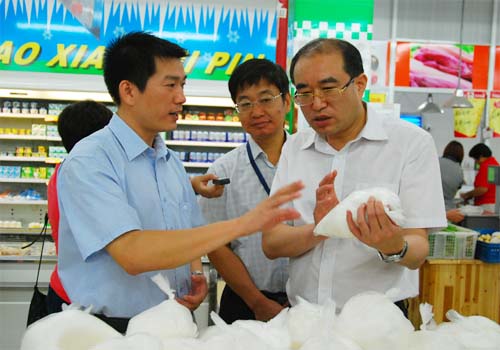 9月9日上午,无锡市常务副市长徐劼一行,专程视察了天惠超市丰涵店,天惠超市总经理罗志坚向市领导汇报了有关实施便民惠民工程、积极提供平价蔬菜的工作。