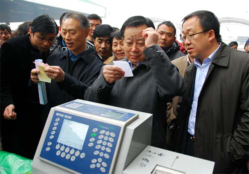 由商务部市场秩序司常司长带领的商务部领导、来自全国二十个试点城市商务局领导、江苏省试点城市商务局领导等一行一百六十余人,齐聚无锡。他们先后在无锡肉类、蔬菜等重要批发、零售单位进行现场考察和项目进展督查。