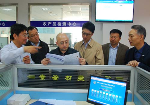 4月11日,监察部驻商务部监察局单记京局长、商务部市场秩序司李振中副司长一行,在无锡调研肉类蔬菜流通追溯体系建设情况。