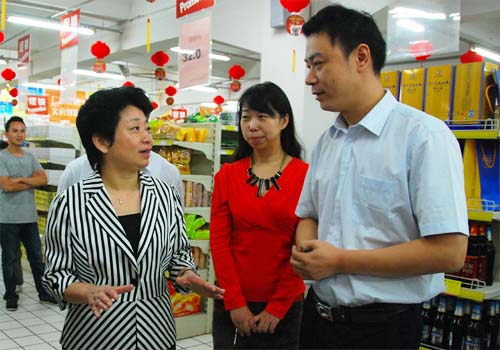 在一路上的检查过程中,黄书记反复嘱咐集团领导要全力保障市场供应,保证食品质量,价格让利于民。黄书记说,朝阳集团拥有主体批发市场,也有农贸市场和天惠超市零售终端,承担着无锡市场重要农产品的供应任务。一直以来,朝阳集团在保证市场供应、稳定物价水平、确保质量放心方面所做出的积极贡献是值得肯定的,希望在今年“两节”期间能够进一步保障老百姓“菜篮子”的丰满供应,加强食品安全监管,价格让利于民,让无锡市民能吃得安全、吃得放心,能过上一个欢乐、祥和的团圆佳节。