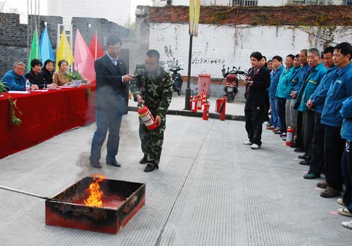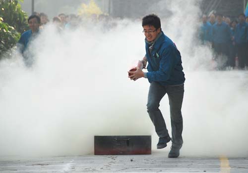 南长消防大队李警官专程到场,向参赛的员工讲解消防知识,并示范灭火器材的操作过程。