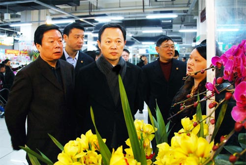 1月31日上午,无锡市第十三届政协主席周敏炜、副主席王锡南、秘书长顾韬、经科委主任周卫国、副主任任国伟等一行来到米乐官方网页版,视察春节市场供应工作。朝阳集团董事长张海良、总经理杨兴德、常务副总经理张君君、市政协委员、天惠超市董事长张庆卿、天惠超市总经理罗志坚陪同政协领导分别实地查看了天惠超市朝阳店、朝阳农贸市场和无锡文化工艺品市场花卉区。