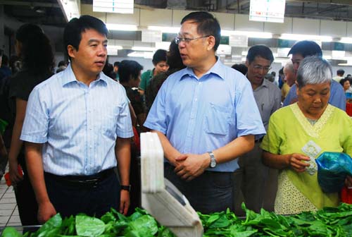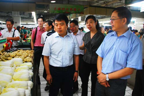 9月5日,无锡市副市长史立军率市物价局局长蔡大钢及物价局副调研员金伟祖等市领导来到米乐官方网页版考察平价商店建设情况。考察团一行先后考察了天惠超市学前街店、朝阳店以及朝阳农贸市场。朝阳集团董事长张海良、总经理杨兴德热情接待了来访领导,并就朝阳集团在平价商店建设方面所作的主要工作进行了汇报。