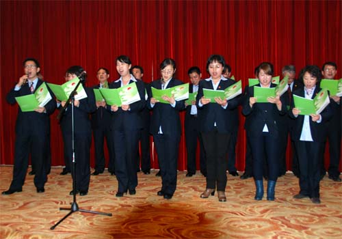 朝阳集团董事长张海良在会上作了重要讲话,他提出,2014年朝阳集团要继续以“队伍建设”为中心,努力使经济效益和社会责任两大目标同步实现。朝阳集团各基层单位要紧密围绕2014年工作中心和基本目标,按照现代化管理的新要求、新任务,规模经营和规范操作,向管理要效益,自觉肩负起把朝阳“菜篮子”行业做大做强、保价稳供、确保食品安全的重任,稳中求进,全力发展。
