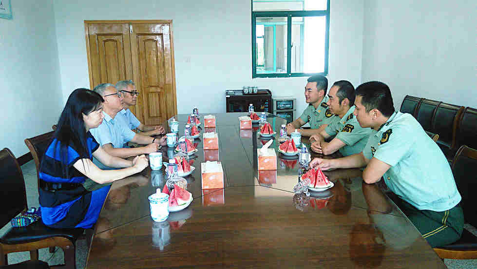 走进连队大门,直工科王参谋、警卫连马指导员和邹连长带领全体连队官兵夹道欢迎集团领导的到来;而集团领导也为连队官兵们奉上了饱含军民鱼水情的新鲜瓜果,让官兵们在炎炎夏日也享受到一份清凉。在会议室,大家回顾了军民共建20多年来的历史往事,都非常珍惜和重视这份共建情谊,并期待今后双方能够开展更丰富的共建活动,拉近彼此的距离,增进双方的互动。之后,在连队领导的陪同下,集团领导参观了部队荣誉室和官兵营房,光辉的荣誉、严格的纪律、一丝不苟的作风和积极向上的正能量,也给参观者留下了非常深刻的印象。