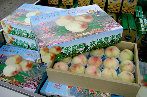 由无锡天惠超市公司、无锡朝阳水果配送中心和阳山水蜜桃协会联合打造的水蜜桃定牌特供,已经有好几个年头,消费者在天惠超市购买水蜜桃完全可以免除买到假冒水蜜桃的后顾之忧。