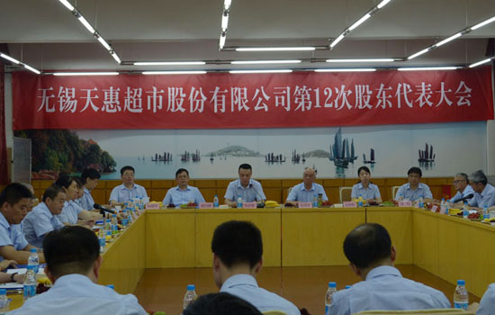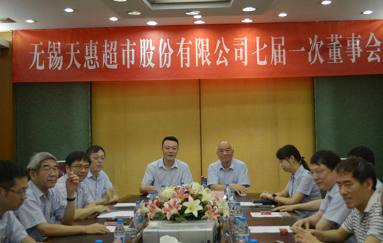 无锡天惠超市股份有限公司2016年7月9日上午8:30在朝阳集团公司三楼第二会议室召开了朝阳集团职工持股会,会议由持股会主任邵裕妹女士主持,会议通过了“关于修改职工持股会章程的议案”、“关于职工持股会管理管理人员调整的议案”、推选了新一届董事会、监事会候选人。上午9:00在朝阳集团公司三楼第五会议室召开了天惠超市第十二次股东大会,大会听取和审议了总经理翟凌先生所作的行政工作报告;听取和审议了财务部长陈晓女士所作的财务工作报告;听取和审议了监事会主席王爱群先生所作的监事会工作报告;听取和审议了党总支书记朱健祥先生关于修改公司章程的方案,并进行了董事会和监事会成员的换届选举。 大会选举张海良、张庆卿、张君君、杨兴德、钱韧、朱健祥、翟凌、华泉荣、张晓松、张恒、陈晓为无锡天惠超市股份有限公司第七届董事会董事,并一致推选张庆卿为董事长;选举王爱群、汤建兴、鲍文梅、罗志坚、陈志兰为无锡天惠超市股份有限公司第七届监事会监事,并一致推选王爱群为监事会主席。 朝阳集团董事长张君君女士在会上做了重要指示。首先感谢了为天惠超市发展做出贡献的天惠全体员工。天惠超市在新一届董事会的带领下会发展的更好。她要求天惠超市一定要坚持生鲜带动战略,抓好生鲜主业,做好低价的同时物要美,质量要有保障,让老百姓在天惠超市享受到真正的物美价廉,提升竞争力。希望天惠超市增强员工的凝聚力,增强员工的企业荣誉感,提升服务水平。问题虽多,只要我们去想,解决问题的办法也很多。相信天惠超市会发展得越来越好。