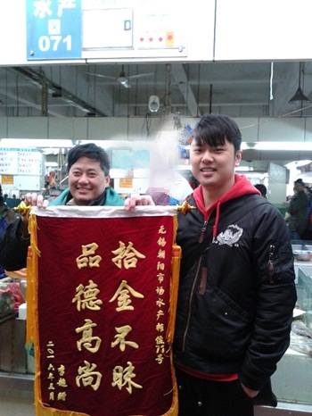 在今年的4月1日上午,顾客马先生和往常一样来到朝阳农贸市场买菜。当他在蔬菜摊位122号驻足时突然发现脚下有一个黑色的钱包,钱包里有1500元现金、一张身份证、数张银行卡。马先生当即将钱包交给服务台。随即市场管理员立刻用广播寻找失主,最终根据身份证上的信息还给失主。