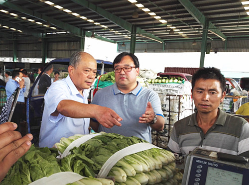 杨副调研员一行7人先后参观了信息中心、检测中心、结算中心,详细了解了我市场在肉菜溯源体系建设以及食品安全保障等方面所做的工作。随后,他们又来到了水果、蔬菜两大市场,查看了市场交易情况,对市场的经营模式与发展情况作了进一步地考察。