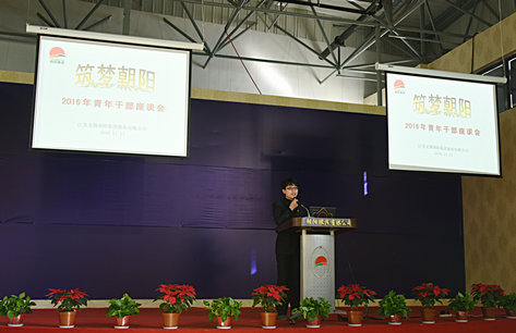 青年干部职工是企业发展的生力军,是企业的未来和希望。要实现百年朝阳梦,就要调动起广大朝阳青年的主动性和积极性。集团高层一直以来都非常关注青年干部职工的成长,注重挖掘培养后备人才。11月11日下午,在集团总经理室的关怀和支持下,米乐官方网页版2016年“筑梦朝阳”青年干部主题座谈会活动在无锡文化工艺品市场三楼中央展示厅会场内顺利举行。 参加会议的有来自朝阳股份、天惠超市、储运公司和集团科室的40周岁以下青年干部代表,以及朝阳班的学生代表共80余人。集团董事长张君君带领集团总经理室全体出席了会议。会议由集团办公室阎虹主持。