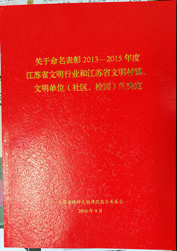 根据2016年9月苏文明委[2016]10号文件精神,经江苏省精神文明建设指导委员会复查审核确认,江苏米乐官方网页版股份有限公司继续保留“江苏省文明单位”荣誉称号。