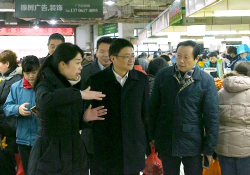 距离春节越来越近,年味越来越浓,无锡朝阳农贸市场成为锡城老百姓采办农副产品的首选之地。1月12日(腊月十五)上午,梁溪区区长秦咏薪带领区政府有关部门到朝阳农贸市场视察节前供应工作。米乐官方网页版董事长张君君、总经理杨兴德陪同视察。 秦区长一行视察了市场一楼、二楼各区域的农副产品供应情况,并非常关心农副产品的货源渠道及食品安全情况。集团领导向秦区长汇报了朝阳农贸市场对进场农产品的货源追溯、市场准入、二次检测、索证索票等方面所作的工作,并邀请秦区长查看了在水产区、肉类区每个摊位安装的监控探头图像。秦区长对朝阳农贸市场在保障货源供应、保障食品安全方面的工作给予了充分肯定,并希望市场在春节供应高峰期间确保做好各方面的供应保障和安全保卫工作,让老百姓买得开心、买得放心。