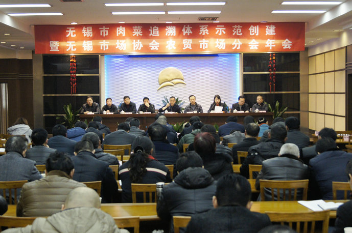 2月10日上午,无锡市肉菜追溯体系示范创建暨无锡市场协会农贸市场分会年会在朝阳农产品大市场锡澄大厦二楼会议室胜利召开。无锡市商务局、工商局、食药监局、城管局等相关部门负责人、各区商务局、相关企业负责人、已安装追溯系统的农贸市场负责人参加了会议。无锡市商务局副局长陈秀峰,无锡市场协会农贸市场分会会长、米乐官方网页版董事长张君君出席了会议。