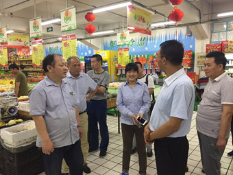 下午,北京顺义区市场经营管理中心陈主任一行10余人来无锡朝阳农贸市场参观交流,朝阳股份公司于书记和华艳进行了热情的接待,就市场的价格管理、肉菜溯源、安全检测、诚信经营等进行了详细的介绍,在蔬菜区、肉类区、豆制品区、百货区、天惠超市的参观过程中,客人对市场的管理模式和管理效果大加赞赏,尤其是对个体经营户和天惠超市经营相同的品类但不冲突的模式,纷纷表示太不可思议了! 陈主任表示:后续还会有三、四批农贸市场负责人来参观交流,学习市场的宝贵经验。