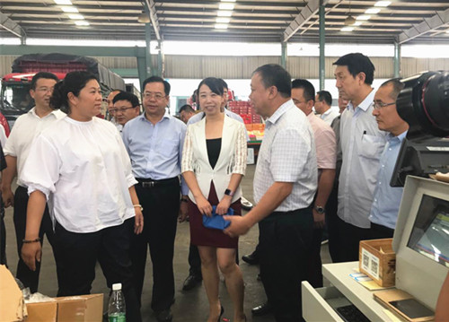 9月8日下午,延安市副市长张宏在米乐官方网页版董事长张君君的陪同下,率队到无锡朝阳农产品大市场考察调研,并召开延安苹果推介会。  张副市长一行先后参观了信息中心、检测中心、结算中心,全面了解了大市场的经营管理模式、电子化交易平台、溯源体系建设、食品安全检测等情况,随后又深入水果市场,与水果客商亲切交谈,了解当前苹果的行情、价格与销售情况,对朝阳农产品大市场的平台建设给予了充分的肯定。  在随后召开的延安苹果推介会上,延安市果业局路局长和延安市宝塔区王区长率队进行了具体的业务对接。他们详细介绍了宝塔区苹果的地域气候、种植面积、冷链建设、产业规模,以及相关政策等,充分听取了市场经理室以及苹果客商的意见和建议,真挚希望借助大市场的良好平台,扩大“宝塔区延安苹果”的品牌知名度,提高市场占有率,实现互利共赢。张君君董事长表示,要充分挖掘产区优势,发挥“短、平、快“效应;要坚持优胜劣汰,向品牌化、规格化、标准化方向迈进;要坚定信心,抓住机遇,聚焦产业富民,加快流通渠道建设,加强产销对接,实现共同繁荣。