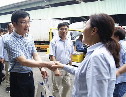 7月27日下午,无锡产业发展集团有限公司党委副书记、工会主席刘涛、副总裁张晓耕等领导在朝阳集团党委书记、工会主席钱韧、副总经理朱健祥的陪同下,冒着高温酷暑,来到朝阳农产品大市场进行慰问。