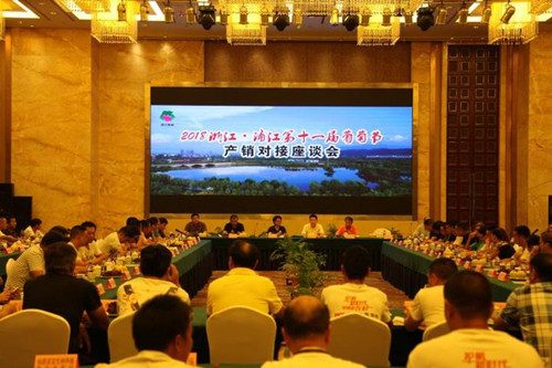 8月7日晚上,2018浙江·浦江第十一届葡萄节产销对接座谈会在浦江隆重举行。中国果品流通协会、上海市果品行业协会、上农批、杭州果品集团、朝阳集团等相关领导、100余名外来客商代表,以及30多位浦江本地葡萄产业、黄桃产业代表齐聚一堂,共商浦江名优农产品未来发展。8月8日上午,举行了区域公用品牌授牌仪式,县委书记带队参观了蒋才文村葡萄园等,讲解了葡萄钢管喷雾施肥浇水的先进技术。