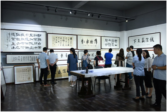 陪同产业集团领导参观艺宝韵书画展