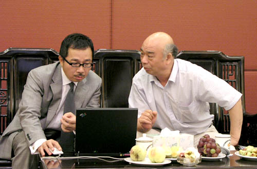 在朝阳农产品大市场,朝阳集团董事长、总经理张海良先生向林则宇先生介绍了朝阳集团在农产品大市场建设方面所取得的进展,并展示了近期市场发展规划。林先生也向朝阳集团领导介绍了台湾省农产品流通、交易等方面的做法,双方在有关农产品流通领域的运作取得了共识,并就进一步合作事宜进行了洽谈。 |