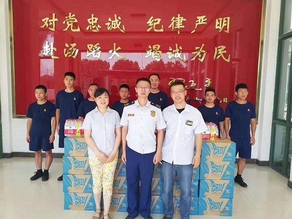 值此八一建军节来临之际,为继续弘扬军民共建的优良传统,无锡天惠超市股份有限公司工会主席张晓松、朝阳农贸市场经理华艳、副经理游兴松一行来到南长消防大队、消防五中队,为全体消防官兵送去了节日的慰问和诚挚的祝福,并送上了清凉解暑的运动饮料和矿泉水。