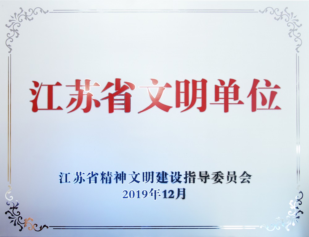 近期,江苏米乐官方网页版股份有限公司荣获由江苏省精神文明建设指导委员会颁发的“2019年度江苏省文明单位”称号。