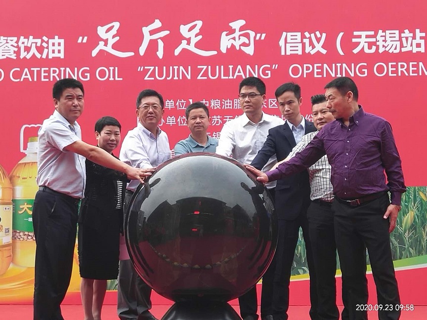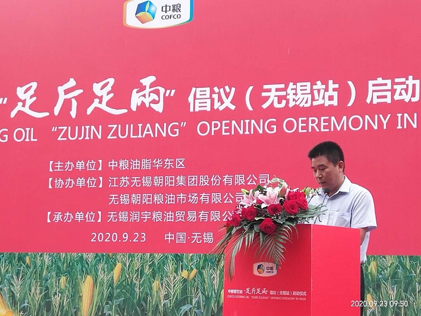 | 9月23日上午,中粮餐饮油“足斤足两”倡议(无锡站)启动仪式在无锡朝阳粮油市场隆重举行。 活动仪式上,朝阳粮油市场携手中粮油脂华东区共同发出倡导:“响应国家号召,厉行勤俭节约,倡导诚实守信;加强行业自律,推进粮食安全信用体系建设,践行企业责任;我们倡议粮油经营户要始终坚持诚信经营,重合同,守信用,坚持销售合法合规、足斤足两的粮油商品。 朝阳粮油市场总经理徐军代表市场做了主旨发言,无锡朝阳粮油市场将一如既往的秉承食品安全监督的职责,继续履行粮油安全保供的社会责任,全力保障无锡粮油供应安全,全力服务经营户做大、做强,努力打造一个市民满意、经营户满意的文明规范的粮油交易品牌市场。(杨敏)