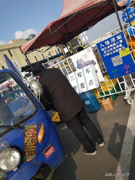 农产品大市场北区对场内涉及车辆进行统计,填写登记表,并且根据属地派出所要求,拍摄车辆、人员信息照片、喷涂普查字样等照片进行上传。(杨敏)