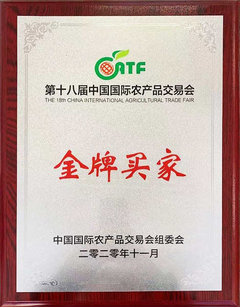 近期,江苏米乐官方网页版股份有限公司荣获由中国国际农产品交易会组委会评选的第十八届中国国际农产品交易会“金牌买家”称号。