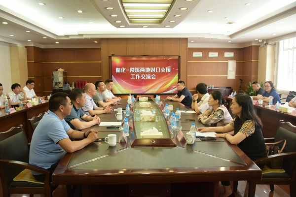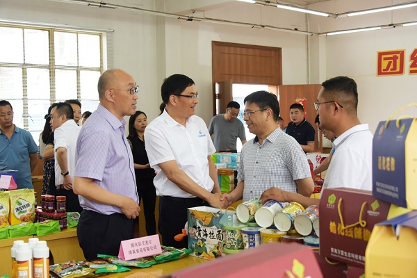 | 为推进梁溪区和循化县两地对口支援工作,6月16日下午,梁溪区人大常委会副主任、区工商业联合会主席、循化县人民政府副县长姚凯,循化县副县长韩伟率东西部扶贫协作领导小组成员及循化当地企业代表,赴朝阳集团组织召开对口支援工作交流会,区发改委、区商务局、区机关事务管理局、区工商联等有关部门负责人,以及包括朝阳集团在内的无锡10家企业代表参加了交流座谈。集团党委书记、工会主席钱韧和集团副总经理张庆卿参加了会议。 在集团三楼会议室,艾麦尔、天椒、伊嘉味、驼铃等4家循化当地企业将各自的主打特色产品进行了布展和介绍推广。双方企业代表在现场进行了接洽交流,区相关部门围绕企业对接、市场拓展、运营模式等方面进行了交流,共同为促进消费扶贫出谋划策。