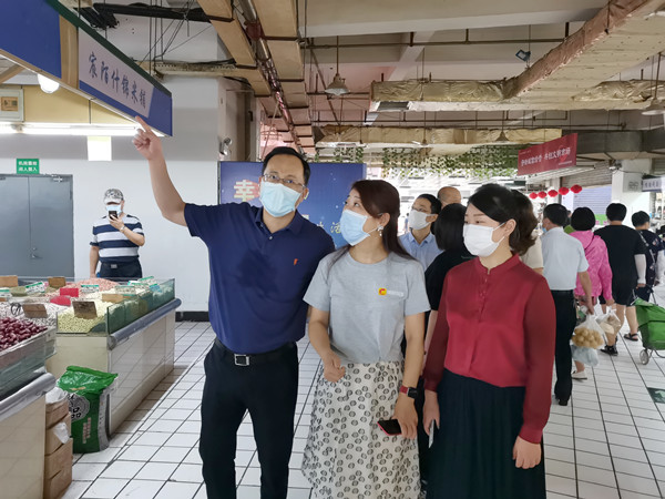 | 7月31日上午,无锡市商务局汪行局长、梁溪区商务局陈萍局长一行7人到无锡朝阳农贸市场检查新冠病毒疫情防控工作,米乐官方网页版张君君董事长陪同领导们来到各个区域进行检查。 在蔬菜区,张君君董事长向领导们详细地汇报了朝阳农贸市场关于新冠病毒防控措施的落实情况,包括门岗扫码、测温、检查口罩、核酸检测、疫苗接种等。 在家禽区、水产区、百货区等区域现场,汪局和经营户进行了亲切的交流,询问市场的价格行情,连声表示朝阳农贸市场价格实惠,便民惠民。 在“三悦空间书吧”,询问了市场去年改造项目的相关事宜,对在人头攒动的菜场内植入文化元素、提供公共文化服务表示称赞。 汪行局长对朝阳农贸市场的疫情防控工作和内部改造工作表示肯定,要求市场全力以赴做好防控保供工作。(华艳)