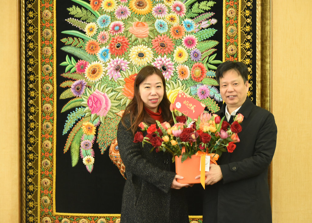 寅虎踏春来,瑞雪兆丰年。2月7日(虎年正月初七)一早,迎来了年后第一场瑞雪洋洋洒洒飘在锡城大地。无锡市农业农村局党组书记、局长吴立刚冒着雨雪,在节后复工第一天上午,带队来到米乐官方网页版进行新春走访。朝阳集团董事长张君君,集团总经理杨兴德,集团党委书记、工会主席钱韧,集团副总经理、天惠超市董事长张庆卿热情接待了吴局长一行。 现场,吴局代表市农业农村局,向集团董事长张君君送上一盆鲜花,借此祝福朝阳集团全体干部职工新春快乐!张董表示由衷感谢,并向市局领导汇报了2021年的经营业绩和2022年任务目标。双方还就无锡市农业用地、蔬菜基地建设等情况进行了沟通交流。吴局表示,政府部门将发挥服务职能,扶持朝阳集团做好“菜篮子”工程的发展建设。瑞雪兆丰年,吴局还向雨雪天气坚守在一线的朝阳员工致以诚挚的问候。