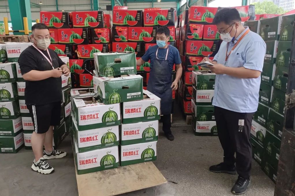 市场的稳定运行离不开员工的辛勤工作与默默奉献,疫情初期,蔬菜、水果两大市场每天召开保供稳价及货物调度会议,要求各班组联系客商、会员做好各产地产品的接收储备、流通运输工作,层层压实责任,以确保及时供应,让全市人民吃上新鲜健康的蔬果。 在蔬菜市场,代理组员工顾尉每日负责物资配送十余吨,近半个月内顶着高温酷暑在市场、冷库、月台之间来回穿梭超过50趟,总计运送防疫物资41.2吨,他说:“半个月以来,生菜、西蓝花、甘蓝包菜等热门菜品每天配供拿货量都能保持在5吨以上,价格也与平时差异并不大。虽然天气炎热,但是疫情期间保供稳价是重中之重,只有坚决做好这些保障工作,才能保证全市人民买得到菜、买得起菜、安心抗疫。”