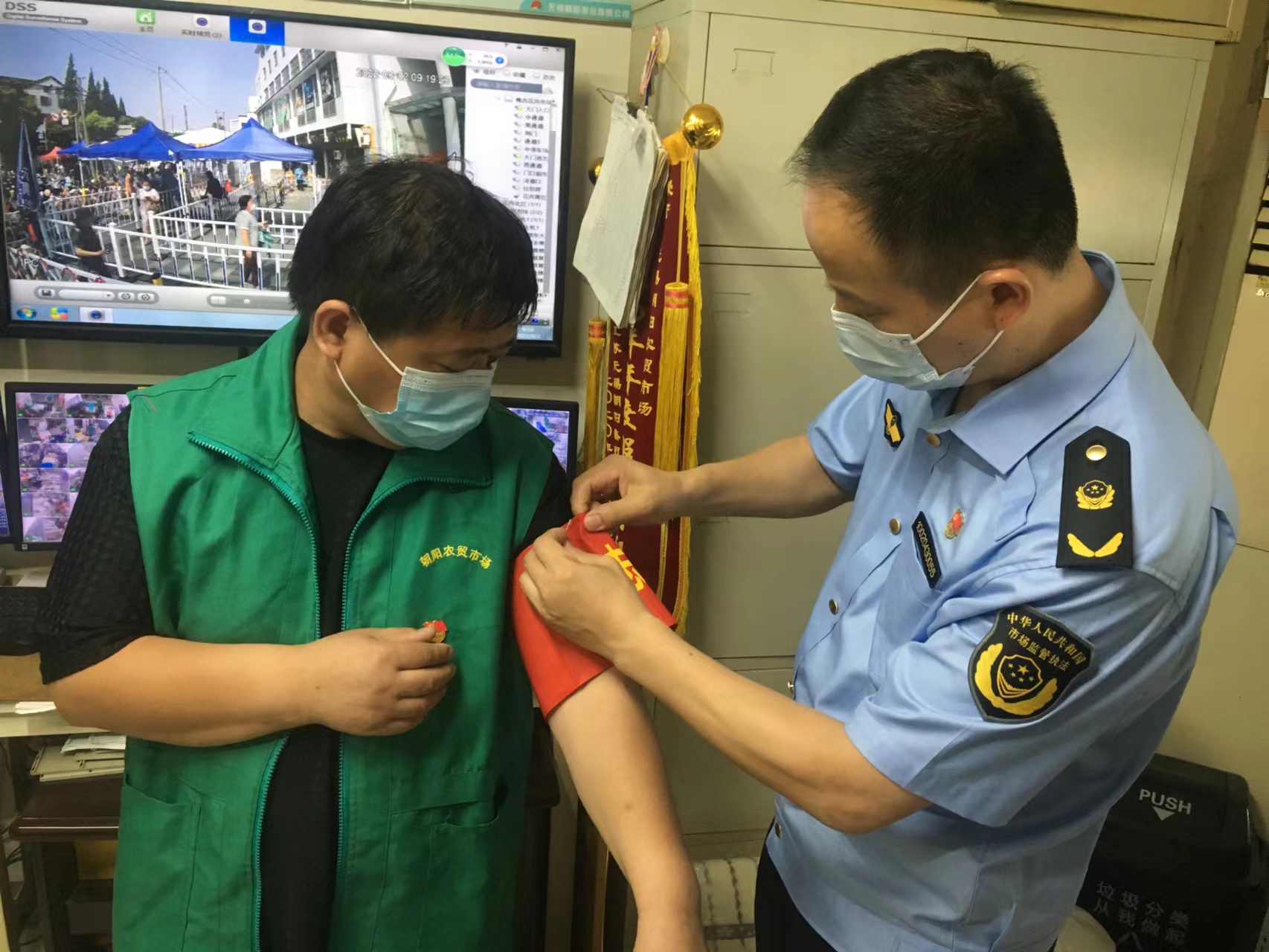8月2日上午,朝阳农贸市场5名党员经营户光荣地从梁溪区市场监管局南禅寺分局领导手中接过“党员先锋示范岗”的授牌,并面向党旗宣誓,表示将主动积极履行党员责任义务,发挥示范带头作用,带领其他经营户和群众一起,共同参与到无锡市争创全国文明典范城市创建工作中,以党建引领朝阳农贸市场提档升级。 党员经营户戴上“党员志愿者”的红袖套,发挥“以点带线、以点带面”先锋模范作用,定期在市场内巡检,对不文明行为和不文明现象及时指出并加以纠正,共同营造舒心、安心的市场购物环境,提升群众满意度。同时,通过文明创建活动的牵引,党员经营户更提高了共产党员责任意识,促进自我管理意识的升华,推动建设文明诚信、守法经营的良好市场环境。