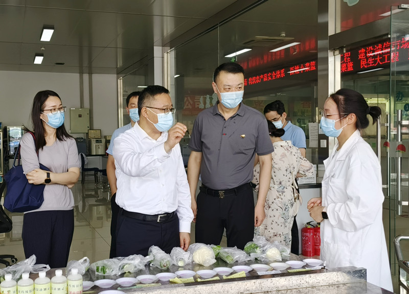 检查组一行首先来到陈列馆、信息中心,全面了解了市场的建设发展情况,以及市场通过信息化大数据平台,开展科学防疫、精准管控的具体举措。随后检查组又实地参观了检测中心、结算中心、蔬菜、水果两大市场、冷库和粮油市场,对市场在疫情期间认真履行保供稳价的社会职责、确保食用农产品安全表示肯定。