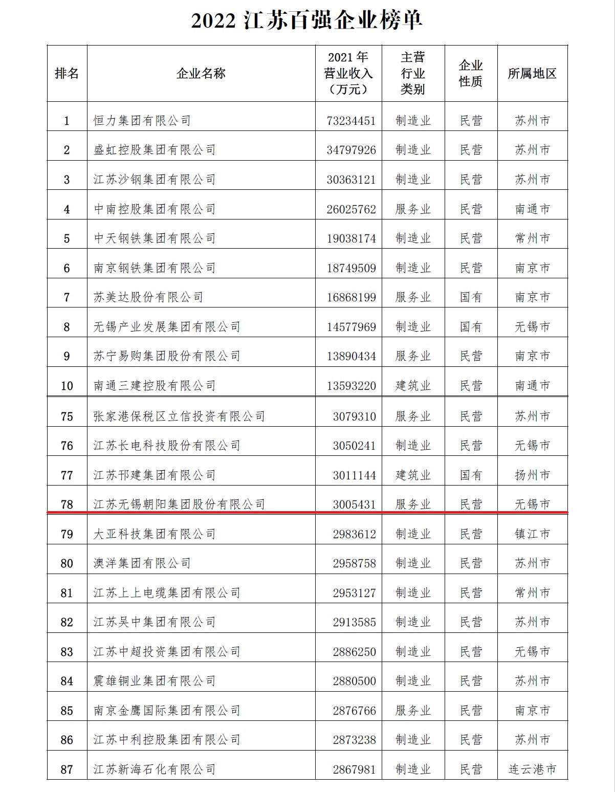 10月10日,江苏省企业联合会发布2022江苏百强企业和服务业百强企业,涵盖国有企业和民营企业。江苏米乐官方网页版股份有限公司分别位列“江苏百强企业榜单”第78位、“江苏服务业百强企业榜单”第20位。