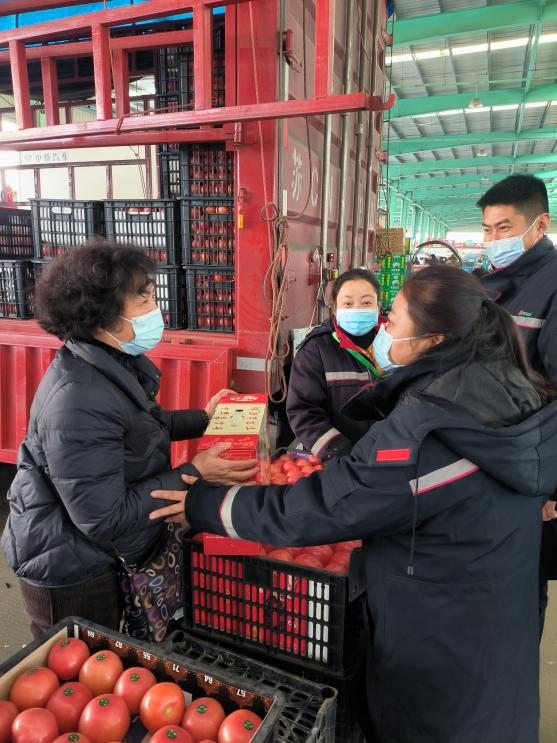 新春佳节来临之际,区商务局为朝阳农产品大市场留锡过年的客商们精心准备了三凤桥合家宴春节礼盒,将温暖和心意送到客商手中,为他们坚守保供一线点赞,向他们致以节日的问候。