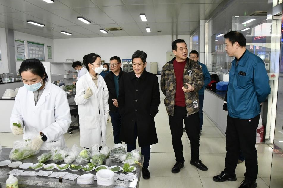 来访客人先后参观了朝阳陈列馆、信息中心、检测中心、结算中心、蔬菜、水果两大市场、冷库、粮油市场,详细了解了朝阳农产品大市场的经营管理模式、电子化交易结算、溯源体系建设、食品安全检测、农产品供应链等方面情况。邱董对市场的全程电子化交易结算、溯源体系建设、信息化数据平台等表示由衷的赞誉。