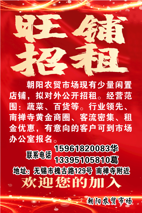 朝阳农贸市场商圈少量旺铺招租,虚位以待!