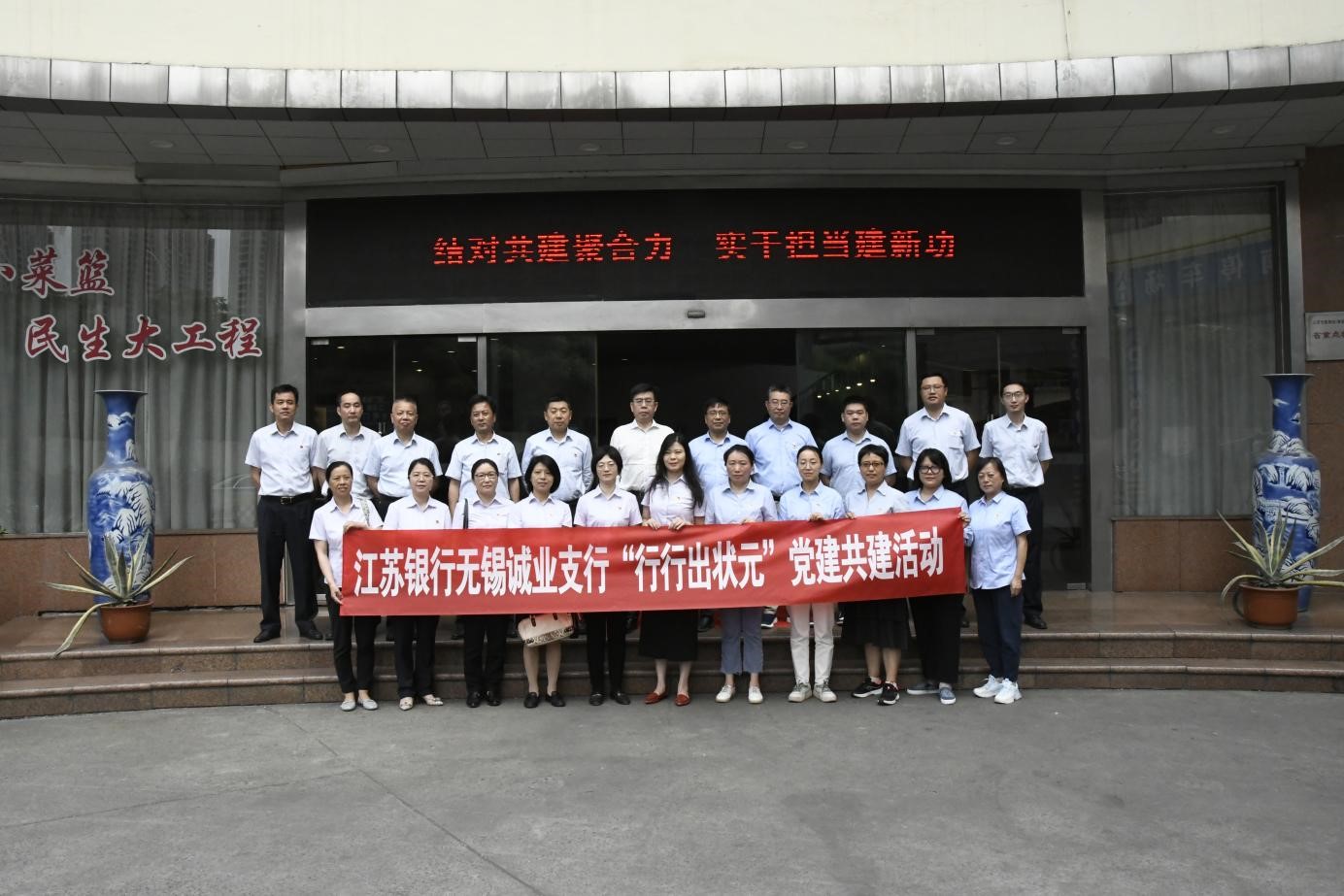 6月16日上午,江苏银行无锡诚业支行与江苏米乐官方网页版在朝阳农产品大市场携手举办党建共建活动,深入学习党的二十大精神,全面贯彻习近平新时代中国特色社会主义思想,进一步加强党建引领,畅通银企双方沟通渠道,实现党建共建优势互补。江苏银行诚业支行行长、党支部书记宗亮,朝阳集团党委书记、工会主席钱韧等23位党员代表参加本次活动。