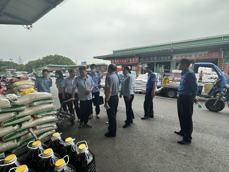 为进一步深入开展安全生产专项整治工作,根据工作安排,梁溪区特种设备和专业市场安全生产专委会组织开展 5 月份安全生产部门联合检查。 5月30日下午,区特种设备和专业市场安全生产专业委员会联合区住房和城乡建设局、区商务局、区城管局、区应急管理局、梁溪消防救援大队对朝阳粮油市场消防设施的维护、消控中心台账、特种设备台账进行检查,市场经理杨敏、特种设备管理员石登陪同检查人员对市场各个区域检查。