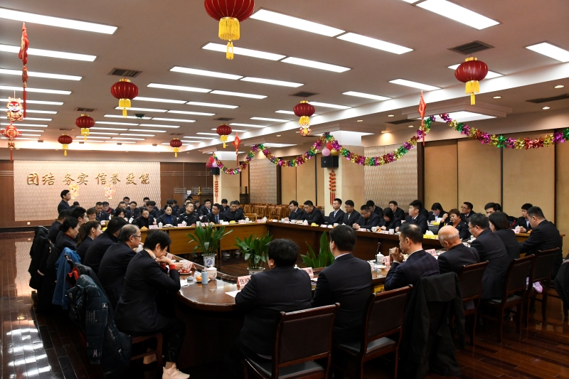 祥龙献瑞贺新春,龙年喜庆满天辉。2月15日(正月初六)上午,无锡朝阳股份有限公司2024年新春团拜会在锡澄大厦隆重举行。朝阳集团班子主要领导、朝阳股份班子成员、各市场各部门负责人、先进班组长、先进个人及青年代表共62人汇聚一堂,共贺新春佳节,畅谈企业发展与未来。会议由朝阳股份副总经理吴蕙兰女士主持。
